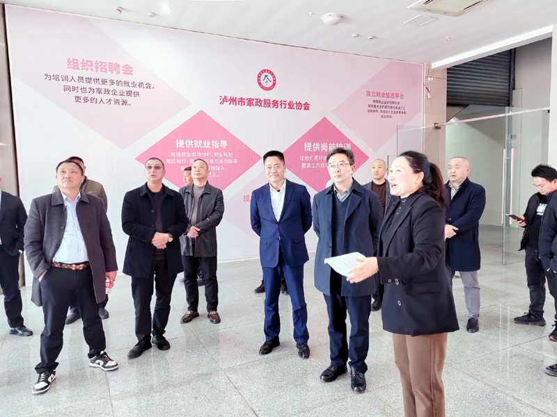 随即,调研组来到酒城家政产业园,听取了民建泸州市企业委主任、家政产业园董事长李金龙对企业的具体介绍。酒城家政产业园创建于2024年,涵盖了母婴护理、家政保洁、整理收纳、家电清洗搬家、养老护理、保健推拿、健康食调几大版块。企业以实现“家政产业聚集发展”为目标,逐步构建技能培训、双创孵化、“企业+市场”、全天候权益保障、政企校院协同创新技术服务家政产业“五大平台”发展模式,打造酒城家政产业园示范基地,努力成为川南片区乃至全省家庭服务行业的引领者,每年将稳定培训6000人以上,提供就业岗位近万个。目前已入驻企业近十家。彭兵对企业顺应市场需求、找准发展新机遇、及时转型发展的做法给与充分肯定,并建议家政产业园要遵循高起点、规范化、数据化、品牌化发展思路,在家政服务行业占领新高地、展现新作为。