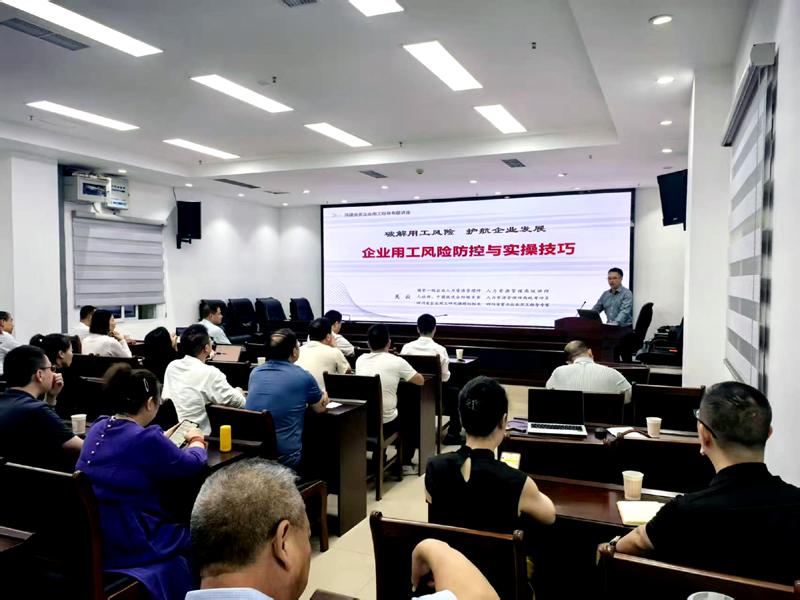 民建市属五支部会员、市委企业委人力资源服务小组组长吴云就相关专业知识为大家作讲解。同时拥有人社部、中国就业促进会、中关村科技人才发展研究院外聘专家,四川省重点企业用工指导专家,四川省企业用工研究课题组组长等身份的吴云,有着近30年人力资源管理及劳动法实务经验。他围绕企业用工中常见的劳动用工制度、工时与加班、工伤、社保、薪酬福利、劳动合同管理等用工风险及企业组织体系和人力资源管理体系设计、人效提升与成本管控、人才激励等方面,全面系统为与会会员上一了课生动的劳动用工法制讲座。