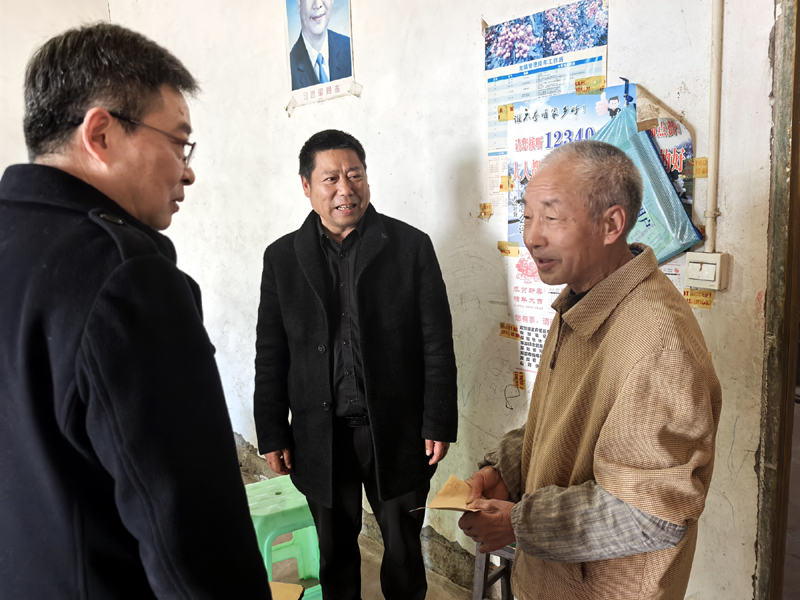 彭兵一行走访看望了肖安炳、余效安等5户困难户,走访过程中,彭兵详细询问了困难群众身体状况、家庭收入、年货储备等情况,鼓励他们保重身体、勤劳致富,并祝愿他们过一个健康平安、欢乐祥和的新春佳节。