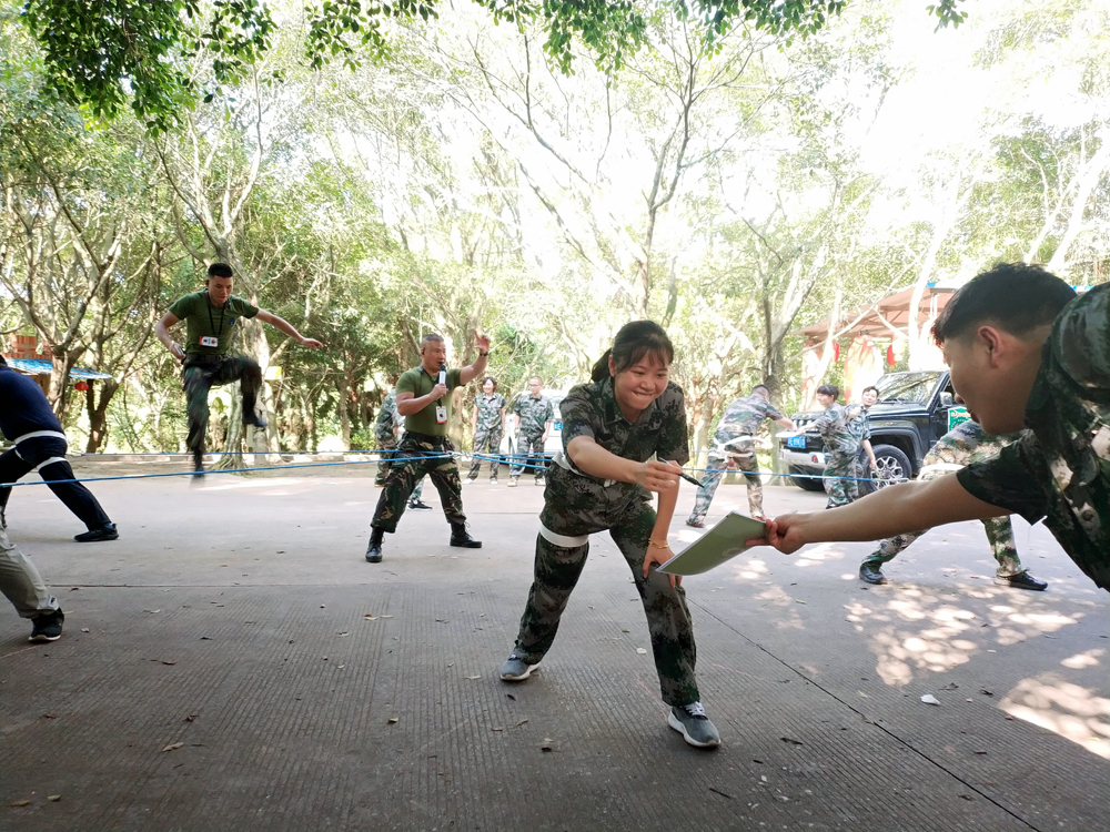 下午开展的军事拓展,青年组和中老年组分别行动。破冰起航、组建团队、团队文化展示……。青年组进行了严格的军事训练。会员们身着迷彩,排成方阵,精神抖擞,站军姿、行军礼、踏正步。