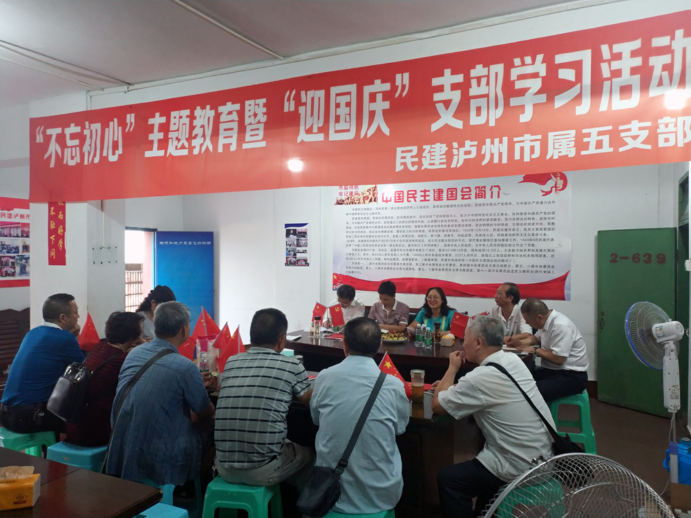 在会员企业泸州成人技术培训学校设立的支部活动室内,民建泸州市委副主委彭兵传达了民建市委9月27日“不忘合作初心 继续携手前进”主题教育活动推进会精神。支部主委郑远秀结合“五个好”魅力基层组织建设,对主题教育活动进行了安排部署。大家就 “不忘合作初心 继续携手前进”主题教育活动以及如何创建“五个好”魅力基层组织展开热烈的讨论。