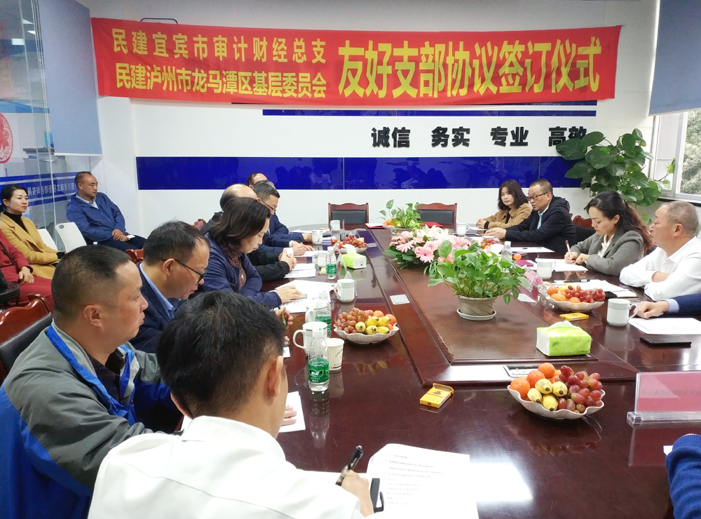 11月20日,民建泸州市龙马潭区基层委员会主委、龙马潭区政协副主席杜朝林率队到宜宾考察调研,并与民建宜宾市审计财经总支签订友好共建协议。民建宜宾市委主委、宜宾市政协副主席马利春,民建泸州市委副主委、泸州市政协社会和法制委员会兼农业和农村委员会主任余静,民建宜宾市委副主委、宜宾市医保局副局长邓维莲,民建宜宾市委机关秘书长刘勇,民建宜宾市委审计财经总支主委、四川君瑞工程管理咨询有限公司总经理蔡小平等出席活动。民建泸州市龙马潭区基层委员会、民建宜宾市委部分会员代表共计30余人参加活动。