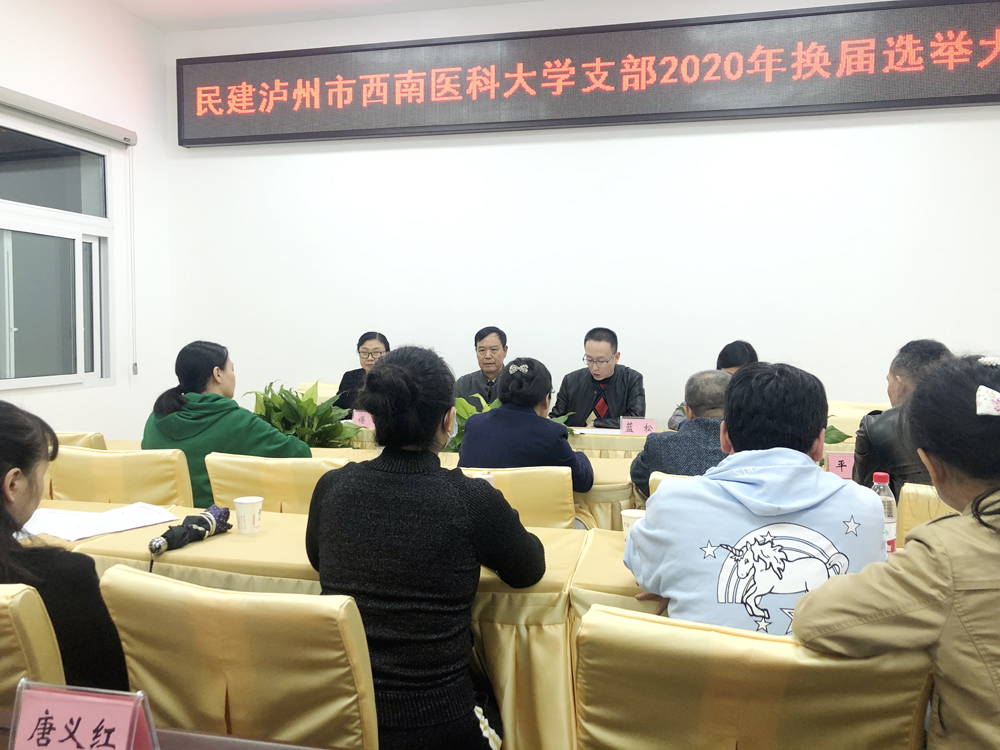 1030日,民建西南医科大学支部换届大会在泸州市党派大楼会议室召开。民建泸州市委秘书长蓝松,西南医科大学宣传统战部统战科科长晏莉应邀参加了换届大会,民建泸州市直属支部、龙马潭区、江阳区、纳溪区基层委员以及西南医科大学民革支部派代表参加了此次大会。会议由民建西南医科大学支部副主委傅静主持。