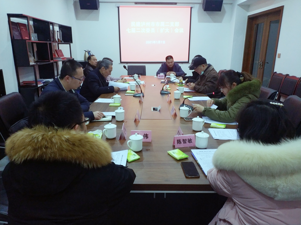 1月7日,民建泸州市属二支部召开七届二次支委(扩大)会,学习中共十九届五中全会等重要会议精神,谋划2021年支部工作。