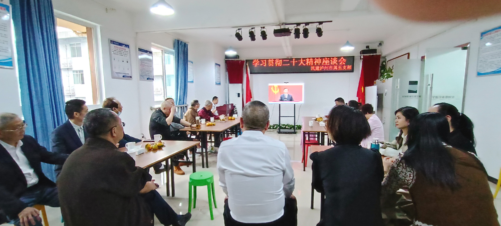 1024日,民建泸州市属五支部组织支部活动,深入学习贯彻中共二十大精神。20余名支部会员座谈学习了中共二十大精神,并结合各自工作实际,就深入贯彻落实中共二十大精神畅谈体会。与会会员一致表示,要坚定信心,同心同德,紧密团结在以习近平总书记为核心的中共中央周围,立足本职岗位,在各条战线上认真履职敬业,团结奋进,争创佳绩。