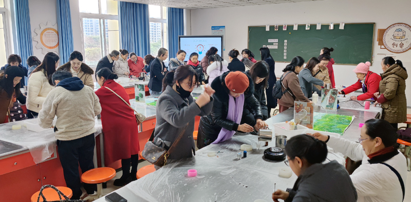 活动现场,欢声笑语,其乐融融。在泸州开放大学专业老师的指导下,大家兴致勃勃地投入到手工皂和扎染的制作中。手工皂制作课上,大家认真学习制皂基础知识,亲自体验皂基融化、精油调配、入模成型等步骤,精心制作出渐变、透明、晕染等造型各异、香气怡人的手工皂。扎染操作室,大家充分发挥创意,用皮筋、弹珠、夹子等工具将手中的抱枕、手绢和帽子扎出各种形状,再浸入染料中,创作出独一无二的扎染作品,体验始于秦汉时期的扎染文化