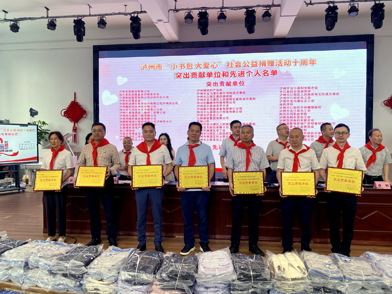 5月14日,泸州市“小书包 大爱心”社会公益活动十周年庆典暨捐赠仪式在合江县人民小学隆重举行。活动现场,政企代表与三百余名师生共同见证十年公益硕果,展望教育帮扶新篇章。泸州民建会员企业、泸州时为节能科技有限公司被评为“十周年突出贡献单位”。